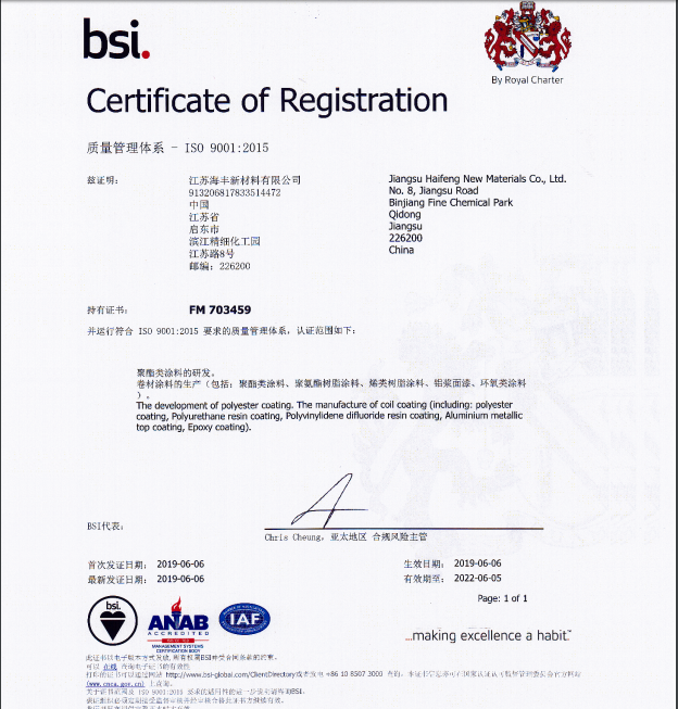 江蘇海豐新材料有限公司成立于2014年,位于啟東市濱江精細化工園區;產品秉承國際先進涂料配方設計理念,專注于卷材涂料 ,集研發、生產、銷售、技術服務于一體。......